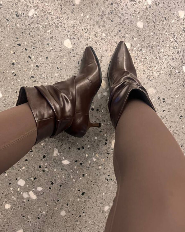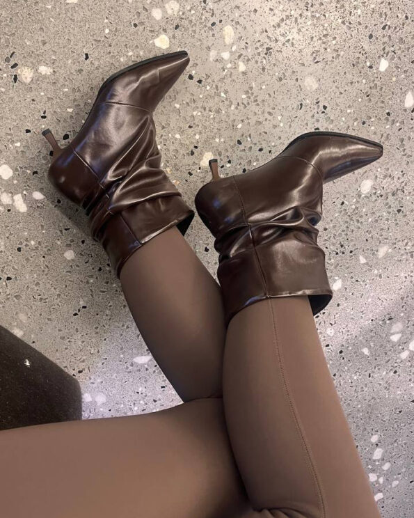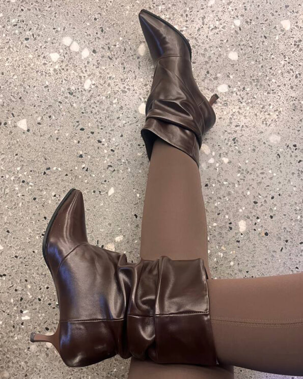 بوت زنانه مدل چروکی کوتاه با پاشنه ۳ سانتی‌متری، مناسب استایل روزمره و پاییزی. طراحی خاص با دوخت چروکی و زیره راحت برای استفاده طولانی‌مدت.